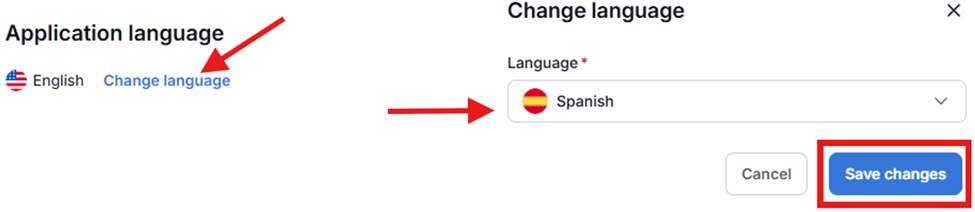 Users can select between English and Spanish as the display language in the app. This can be changed at any time from the menu settings.
