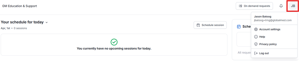 Click the profile icon in the upper right corner of the home page to access key account options: