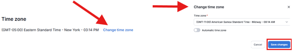 - Alternatively, enable an Automatic Time Zone to allow the app to detect and apply the correct time zone based on your location