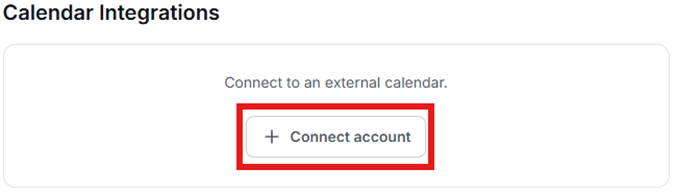 Click the “+ Connect Account” button under the Calendar Integrations section.