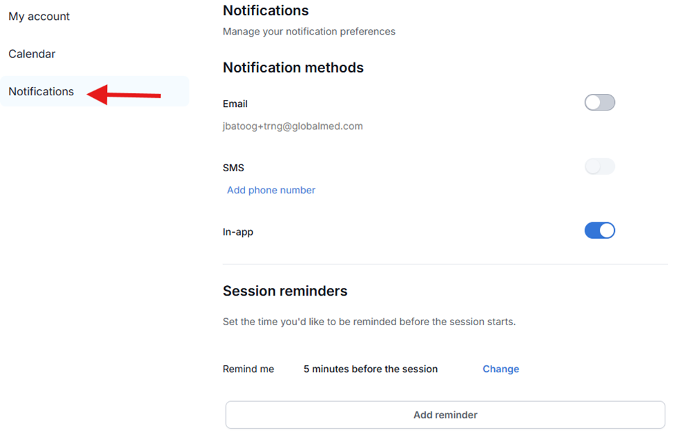 Under the Notifications section of account settings, users can manage how and when they receive alerts: