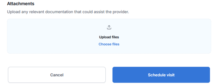 Click “Schedule Visit” to confirm and save the appointment. Or click “Cancel” if you do not wish to proceed.