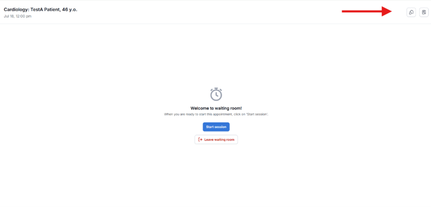 To start the session, click the blue Start session button in the center or leave the call by hitting the Leave waiting room button.