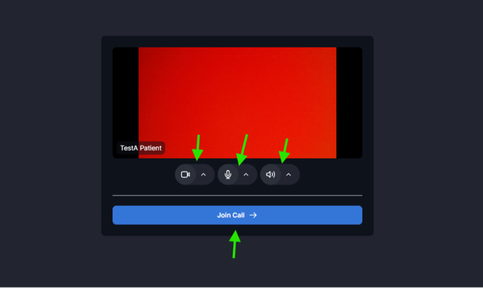 - After starting the call, you will see a screen where you can check your microphone, speaker, and camera settings.