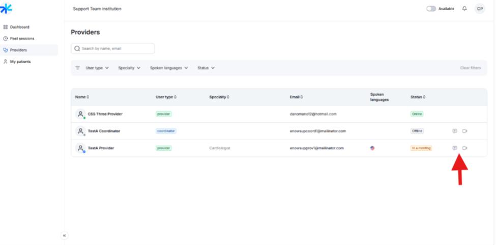 - Click the “Message” Icon to open a secure chat window with the selected provider.