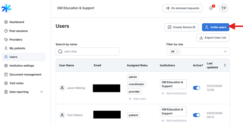 As an administrator, you have the ability to invite users to create a profile and manage their access to the platform. Follow the steps below to invite new users and manage existing ones.