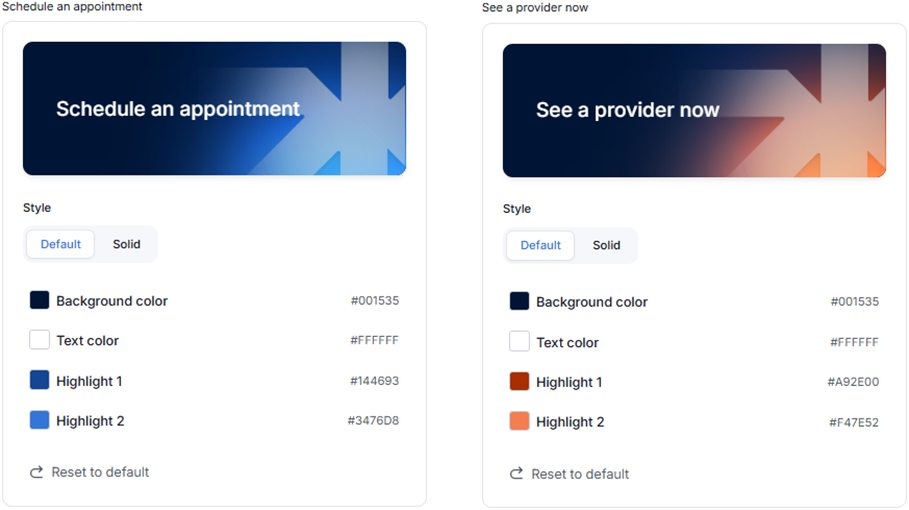 Patient Booking Buttons – The color scheme of the patient booking buttons.