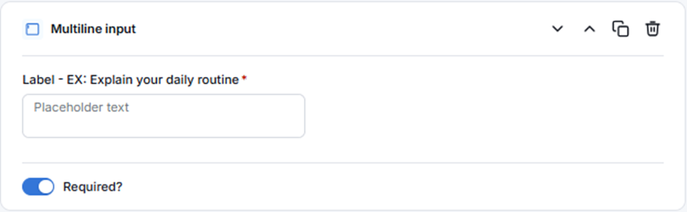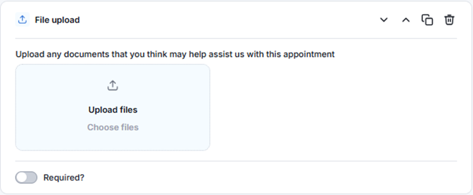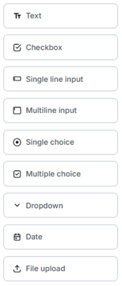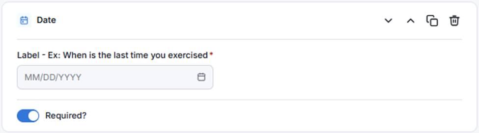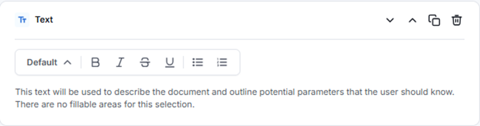 IMPORTANT: There are 4 buttons on the top of each field once added to the form. These buttons allow you to move the field up or down to ensure proper placement on the document, as well as copy (duplicate) or delete fields as needed.