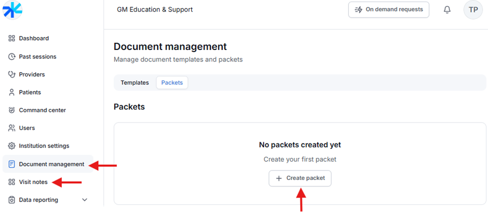 - Administrators have the ability to generate document and visit note packets for both patients and providers to complete before and during the session: