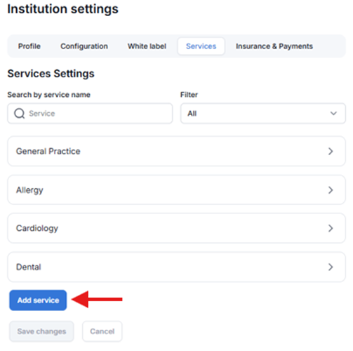 - Services and Pricing – Add or adjust the types of services your institution offers and their associated costs.
