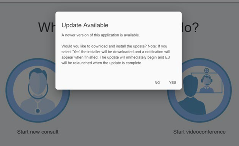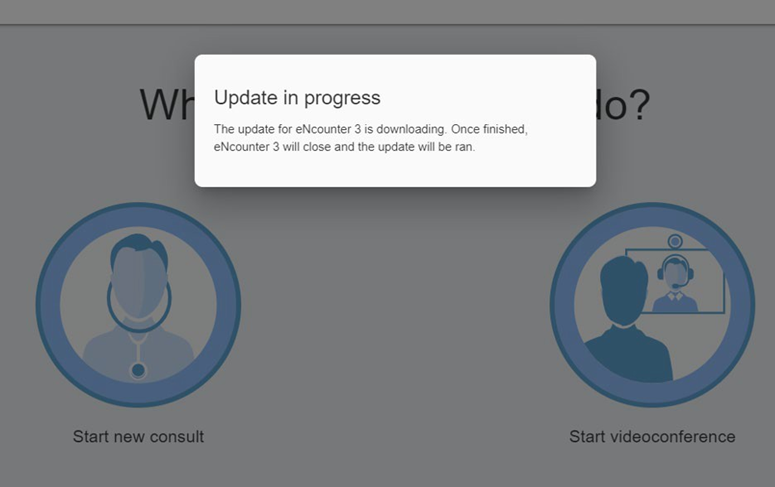 - If the Auto Updater is enabled in your Institution, then you will be automatically notified when new versions of eNcounter are available. When you first login, you will know that an updated version is available if you receive this message:
