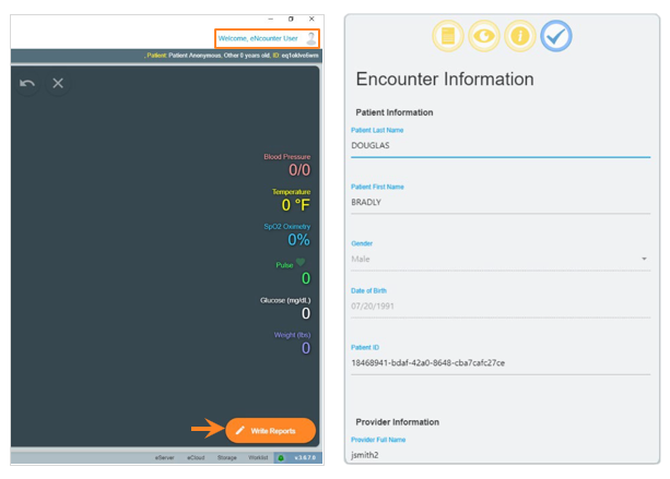- To associate the information gathered in Offline Mode with a specific provider and patient, the relevant details will need to be updated on the eNcounter Information tab found on the Write Report panel.